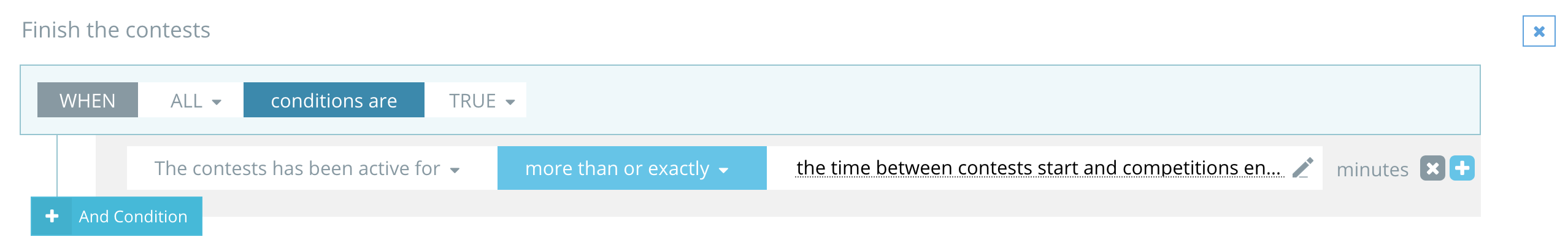 | The contest will finish when the contests have been active for exactly or more than the time between the contest start and the competition end time. |